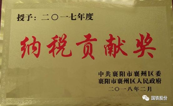 近日,襄陽國鐵被授予“襄州區(qū)2017年度納稅貢獻獎”,并獲得現(xiàn)金獎勵6萬元。