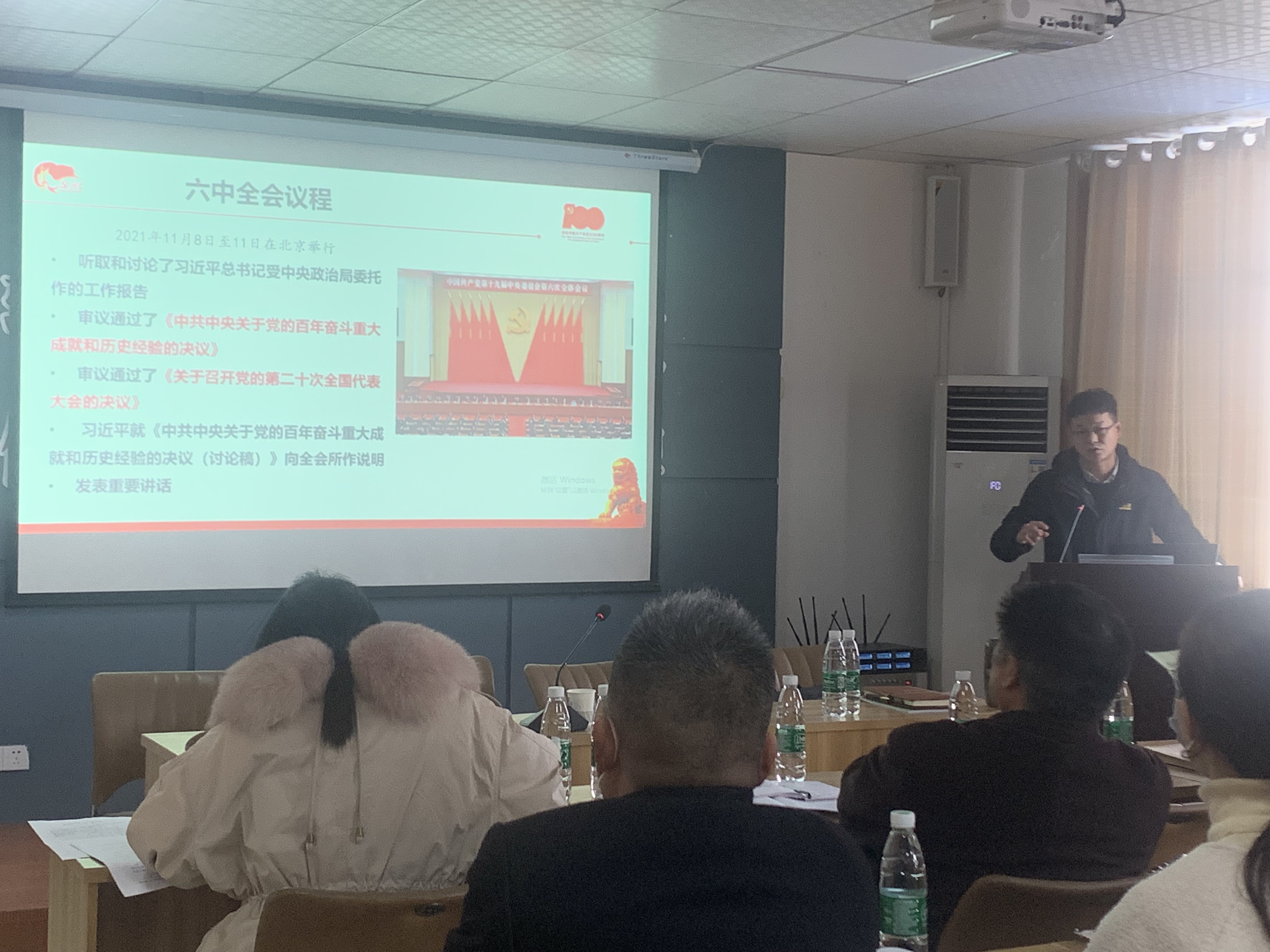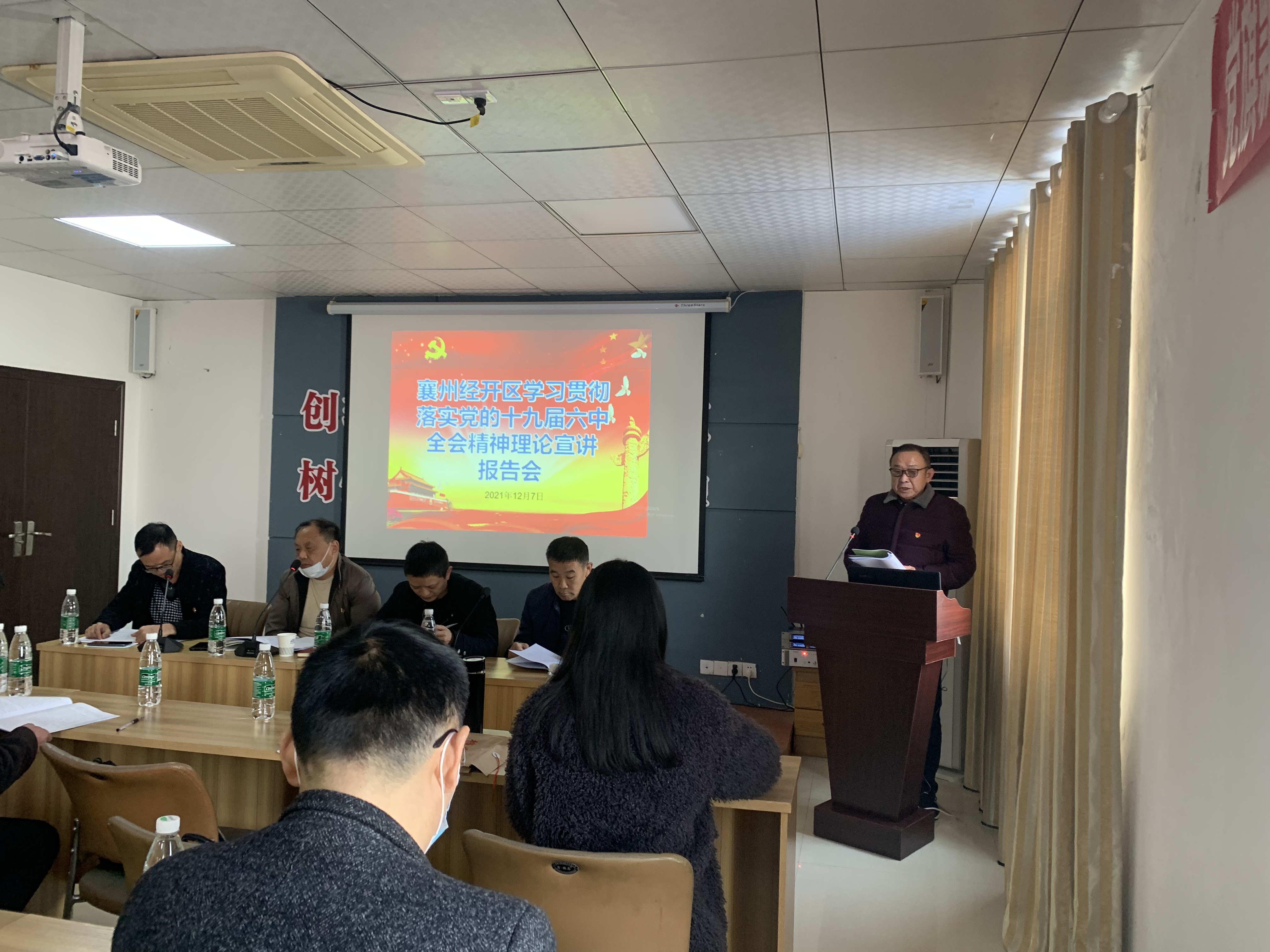 會議主要任務(wù)是認(rèn)真學(xué)習(xí)黨的十九屆六中全會精神,總結(jié)2021年黨建工作成績,安排年末和2022年園區(qū)黨建工作。會議結(jié)束后,緊接著請襄州區(qū)委黨校知名講師王拓進(jìn)老師講授黨課。